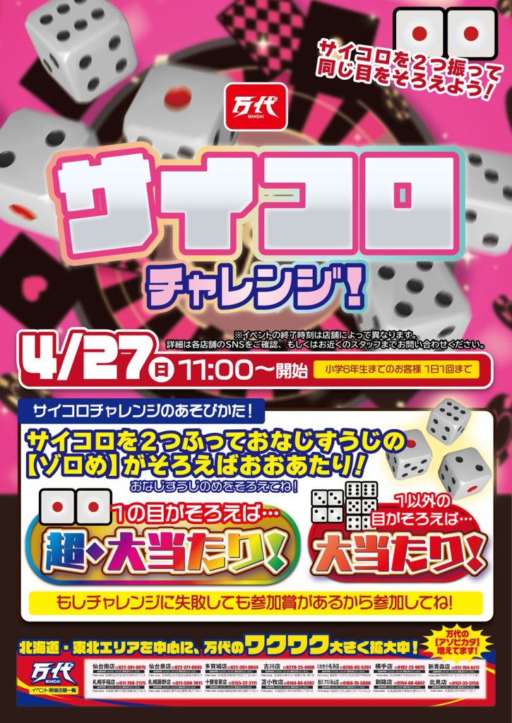 【万代のサブスク遂に始動】 皆様からのご要望にお応えし、万代公式メンバーシップを開設! 日頃ご利用いただいている皆様が 更にお安くプレイできるメンバーシップ! 〇毎月15日は特典クーポン配信日〇 【クレーンゲーム無料券8回分】 【限定プレミアム抽選会の抽選券】 クーポンはご登録初回並びに翌月以降も毎月1度15日に配信 クーポンの使用期間は15日~翌月14日まで 更に!メンバー限定お得情報も不定期配信予定! インフルエンサーコラボ先行情報 クレーンゲーム取り方講座や豆知識 メンバーシップアンケート などなど メンバーシップに加入して毎月メンバー限定のお得な特典をGET! 是非お安くプレイ出来るこのチャンスをお見逃しなく! 詳細は下記URLから ↓ ↓ ↓ ↓ ↓ ↓ ↓ ↓ ↓ ↓ https://lin.ee/DM06POkd↓ 【今週のイベントはこちら】 ↓