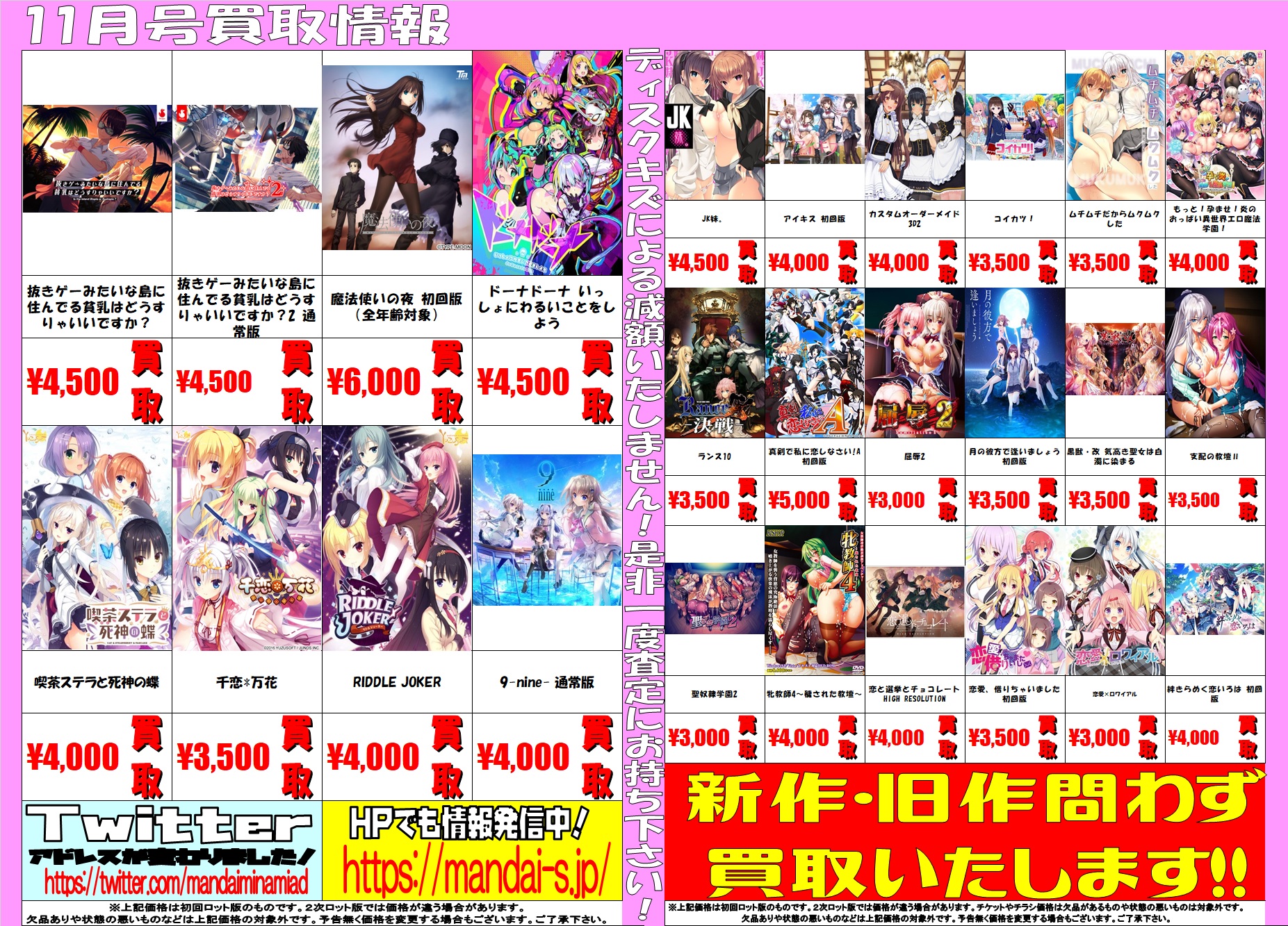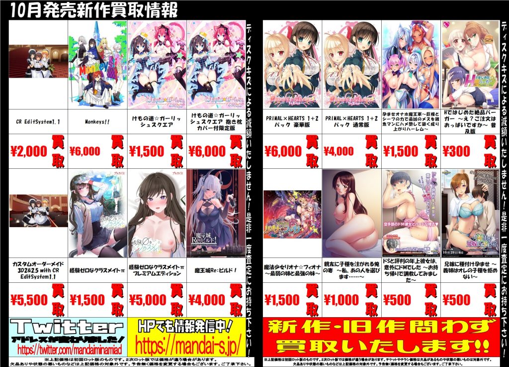萌え〈アダルト〉10/17 新作美少女PCゲームの買取告知です!