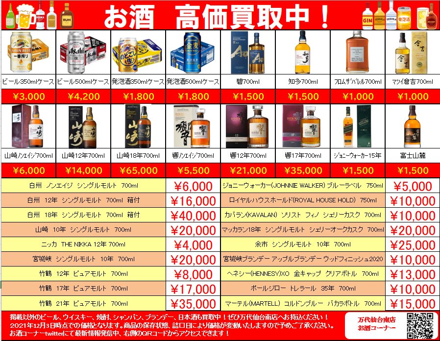 🍺🍺🍺🍺🍺🍺万代仙台南店 お酒コーナーにて買取強化中です!🍺🍺🍺🍺🍺🍺
