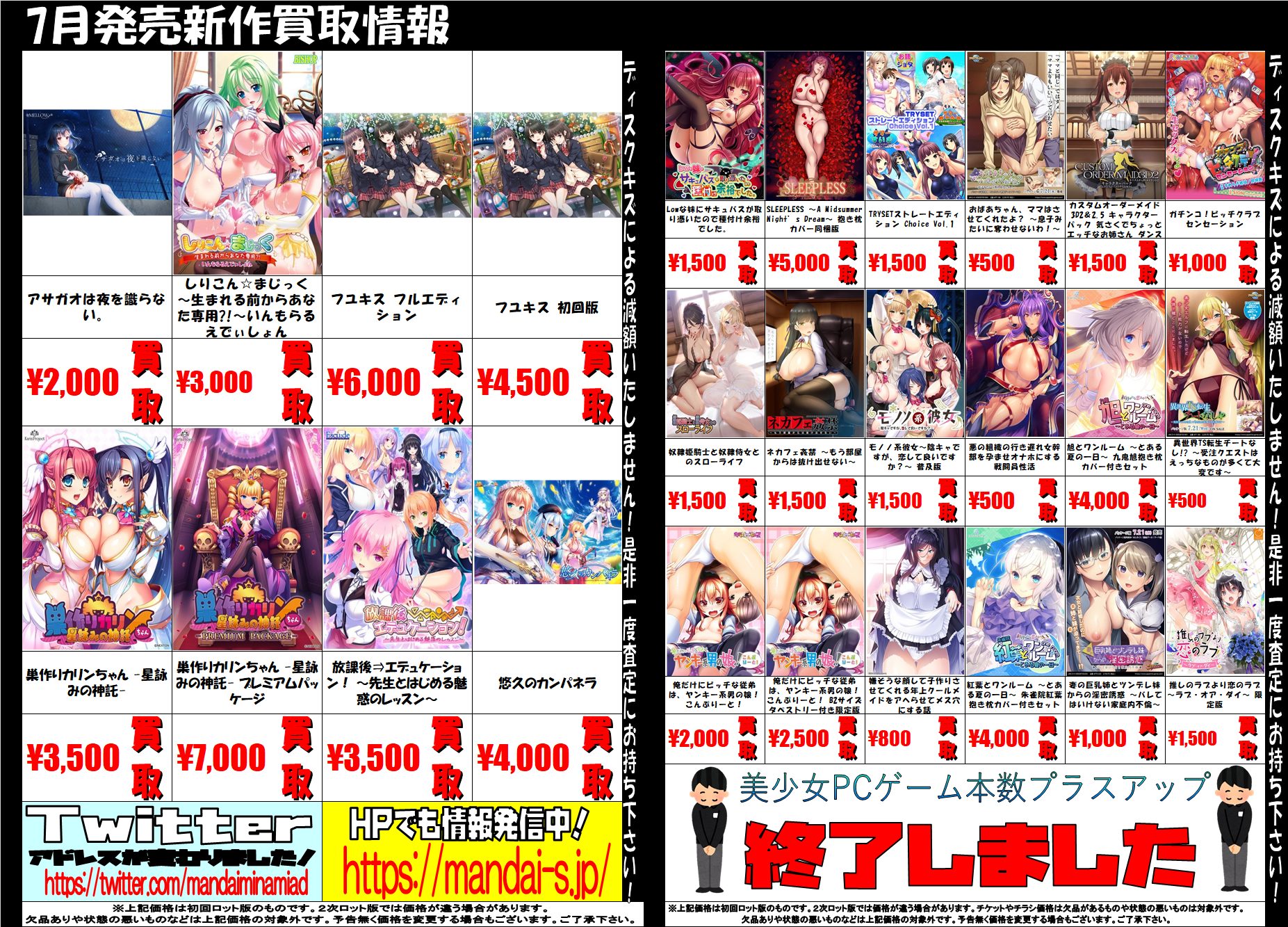 《アダルト》新作美少女PCゲームの買い取り情報です!