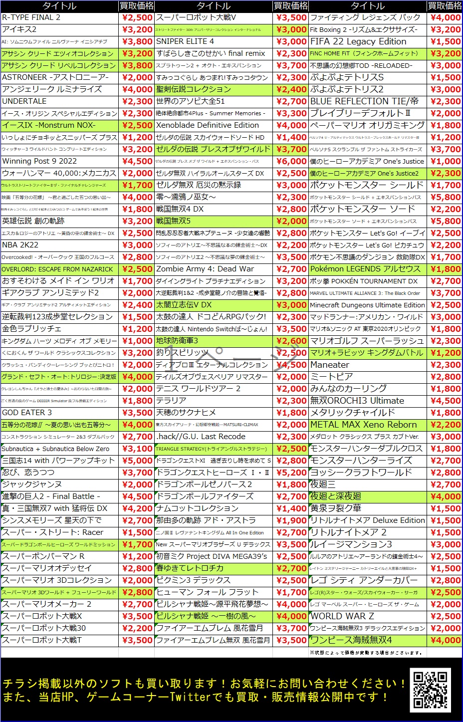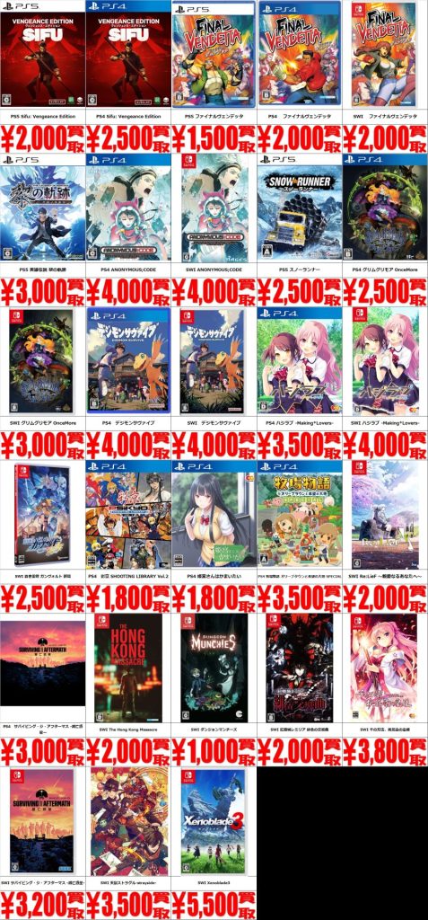 買取情報ゲーム11/24更新 スイッチ&PS4&PS5買取情報