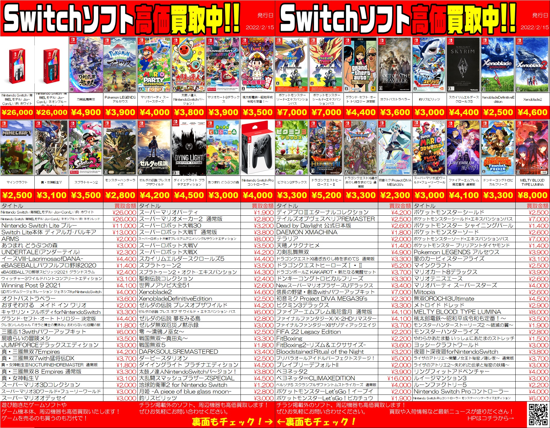 買取情報ゲーム11/24更新 スイッチ&PS4&PS5買取情報