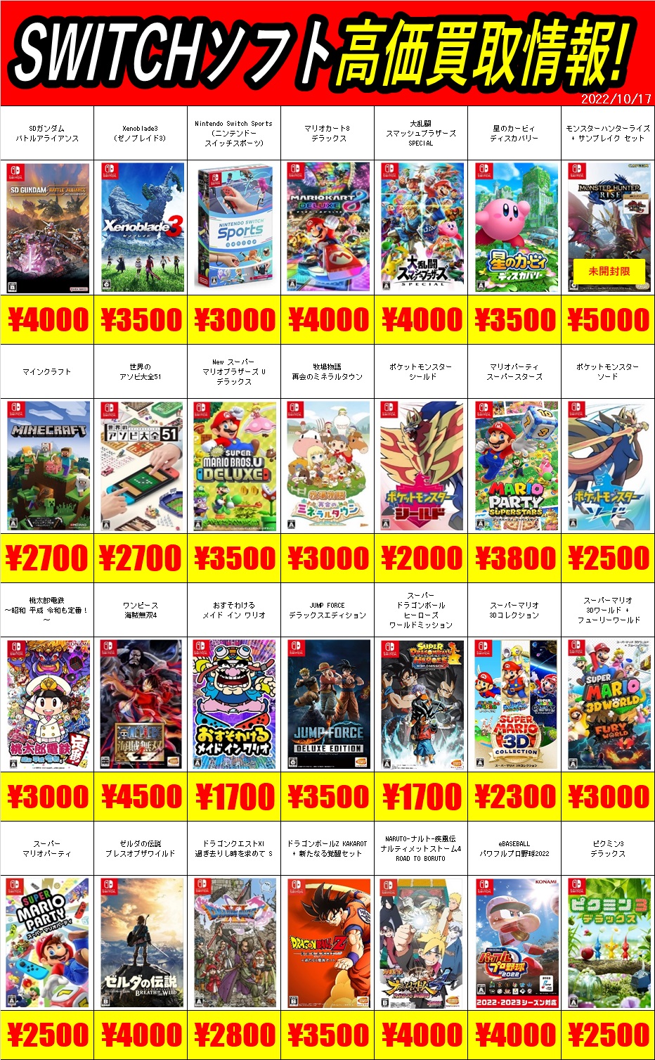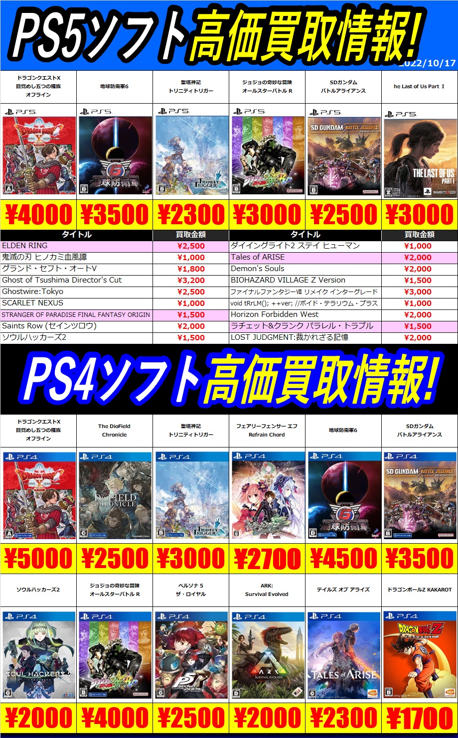 ゲーム11/10更新 スイッチ&PS4&PS5買取情報