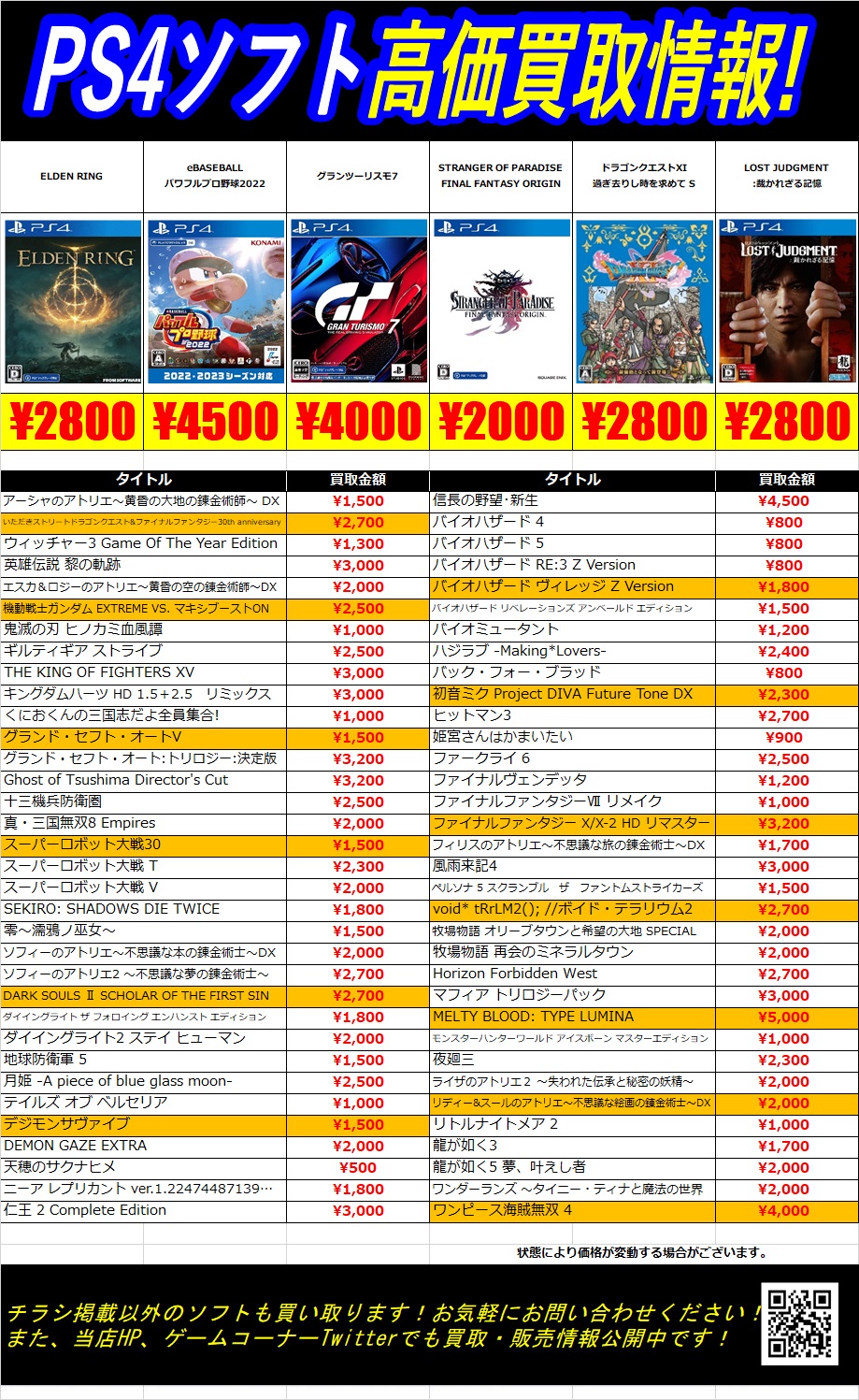 買取情報ゲーム11/24更新 スイッチ&PS4&PS5買取情報