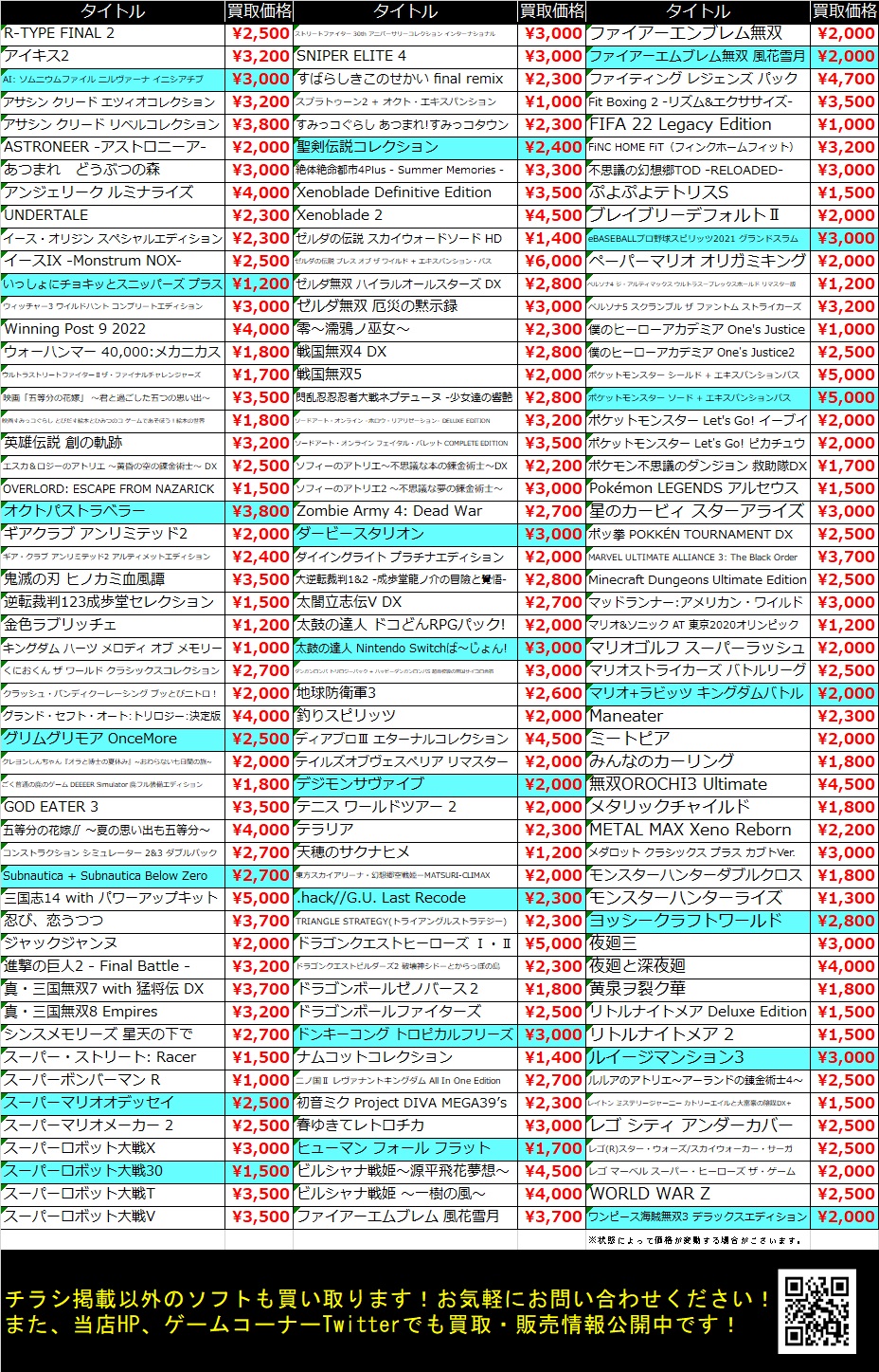 《ゲーム》10/29発信ゲーム買取情報