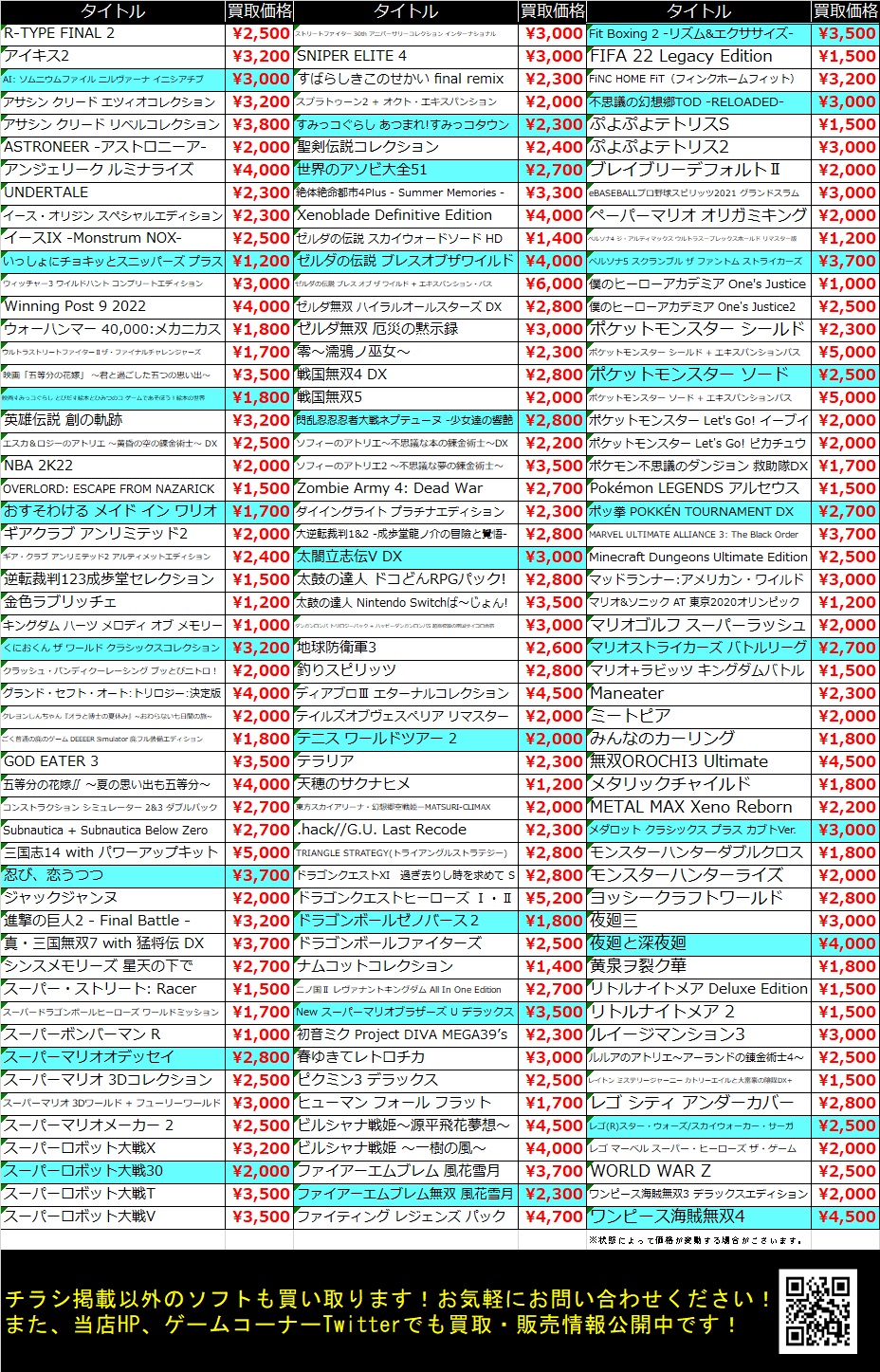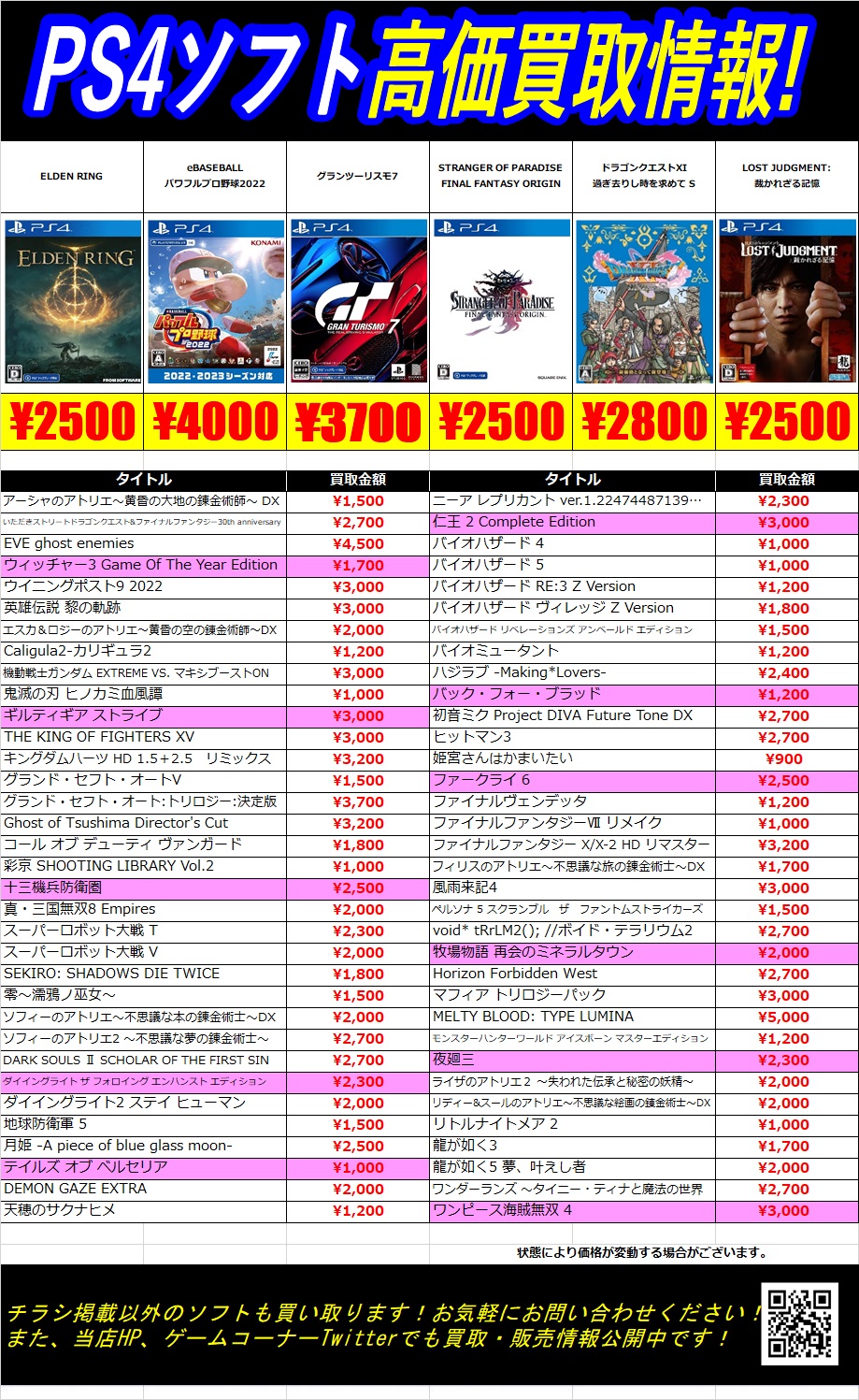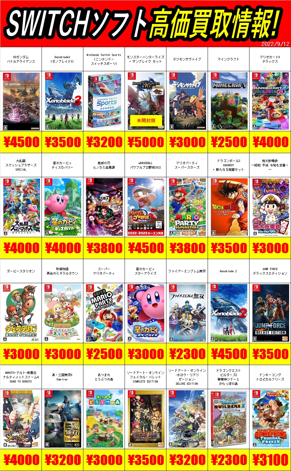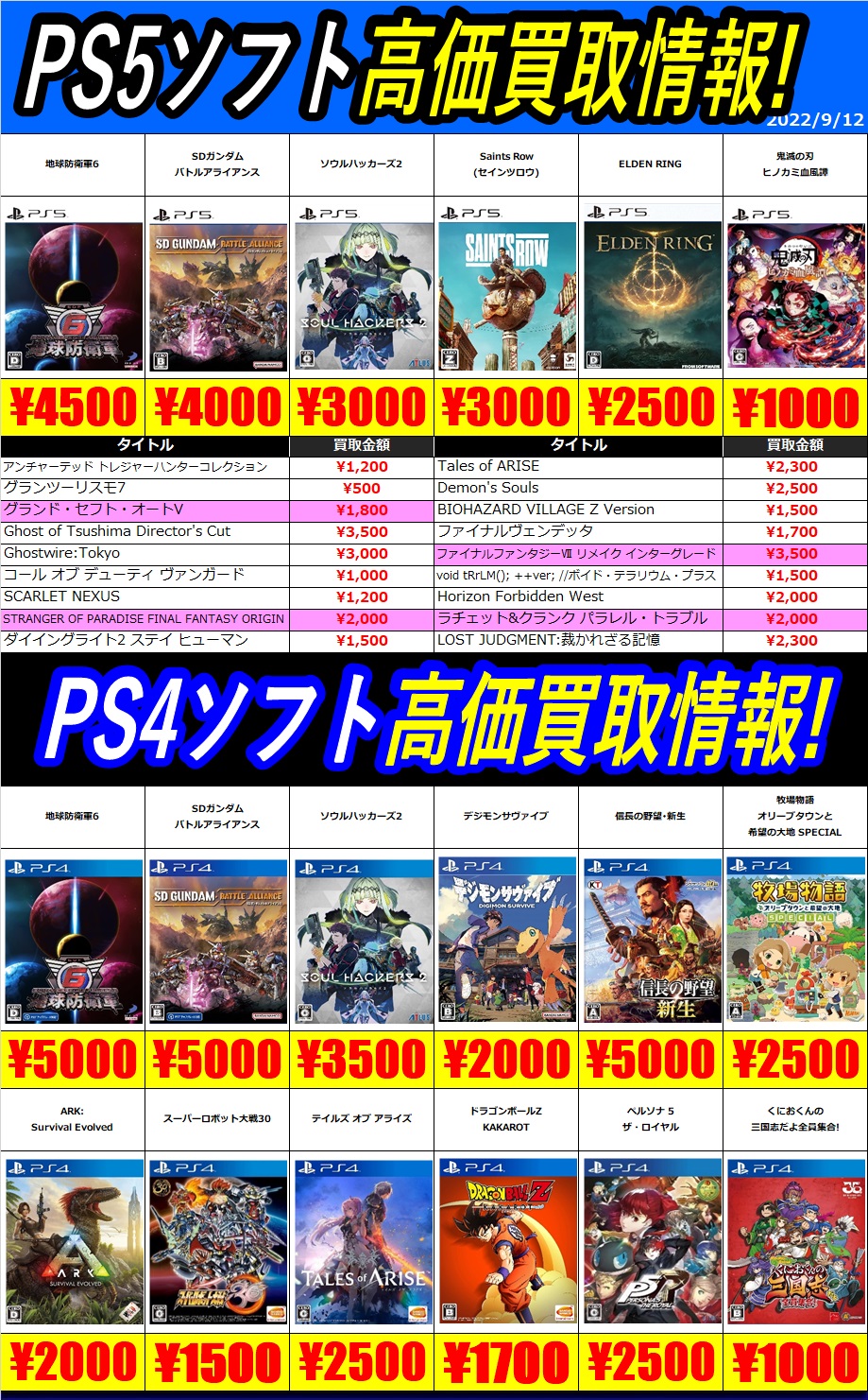 《ゲーム》9/12更新 ゲーム買取情報🎇