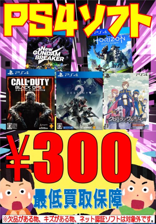 《ゲーム》PS4ソフト最低買取保証始めました!
