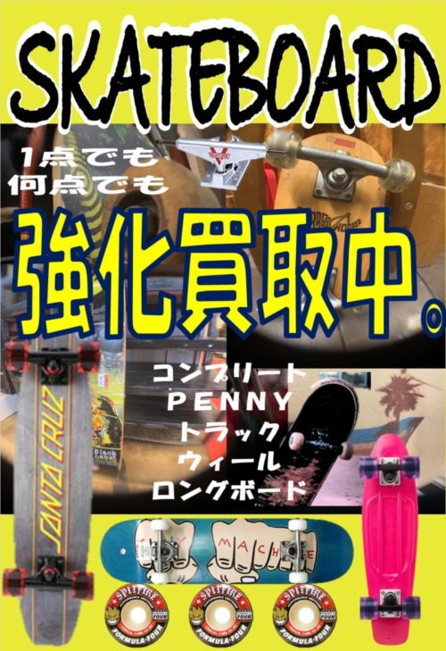 こんにちは!スタッフです!! 南店スポーツコーナーでは 現在スケートボードの在庫が足りていません…1点からでも大丈夫! 何点お持ちいただいても大丈夫!! コンプリート大大大歓迎!!! トラック、ウィールだけでもOK! ロングボードもOK! ペニーも大歓迎です!!! 是非南店にお持ち込みください!!! 現在のスポーツコーナーはこんな感じです\( 'ω')/