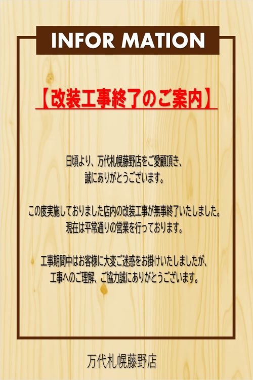 《店舗改装工事終了のお知らせ》