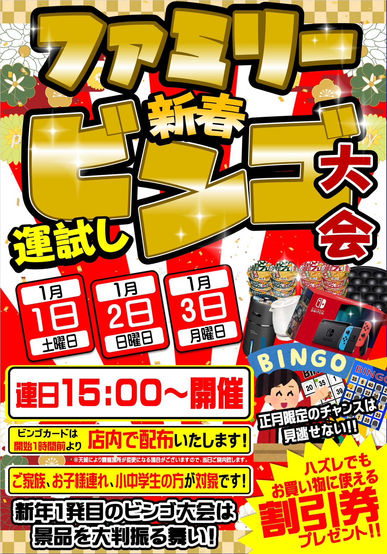 福袋販売や衣料品の大セール、ビンゴ等のイベントも行います!