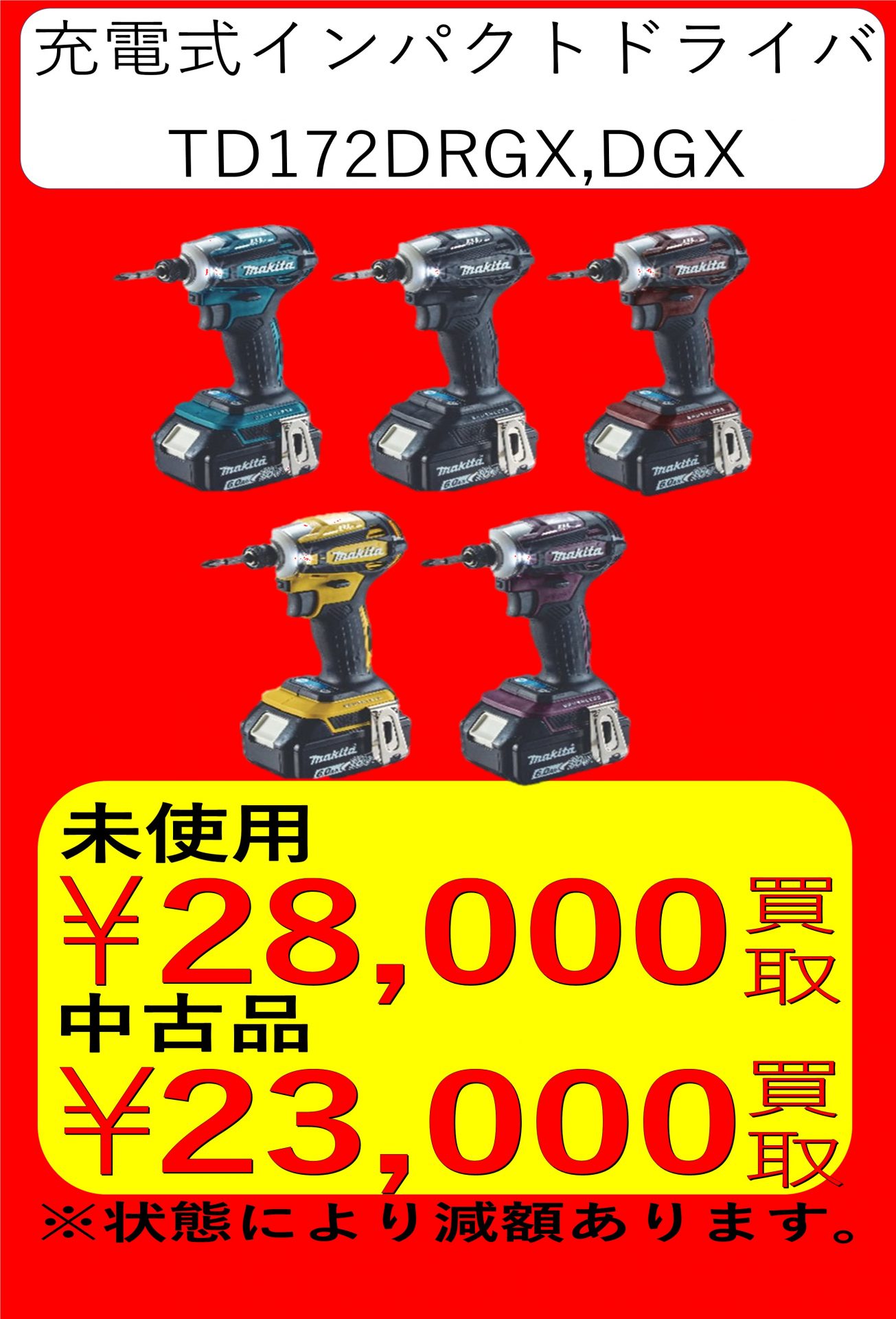 【家電】【工具】2021/10/4 makita充電式インパクトドライバTD172DRGX買取価格