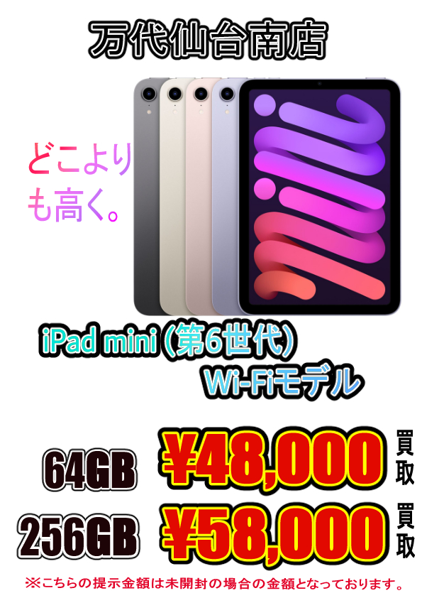 iPadmini第6世代 (Wi-Fi モデル) どこよりも高く買い取ります。