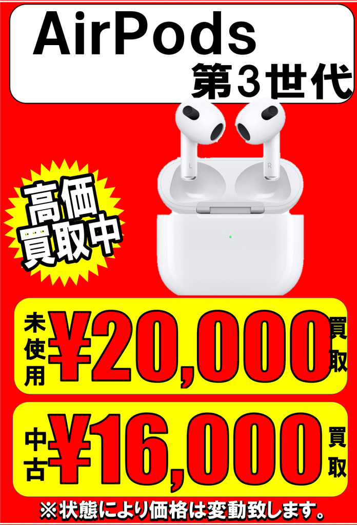 【家電買取情報】AirPods 第3世代 MME73J/A ワイヤレスイヤホン 欲しいです!!!