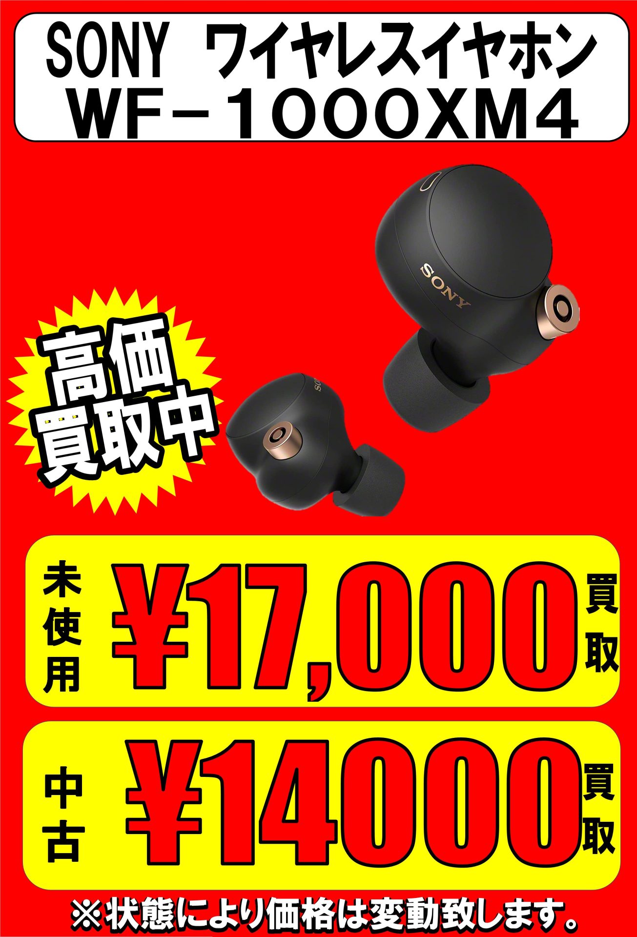 【家電買取情報】SONY ワイヤレスイヤホン WF-1000XM4 高価買取中です!