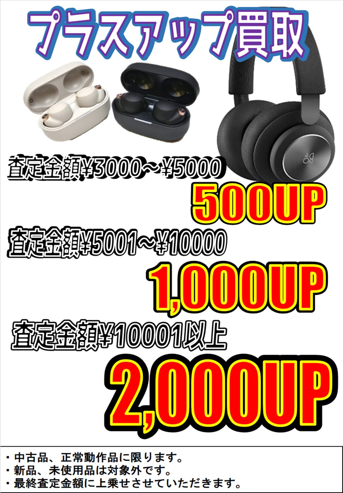 高価買取してます!同時にヘッドホンイヤホンのプラスアップ買取も行っておりますので、