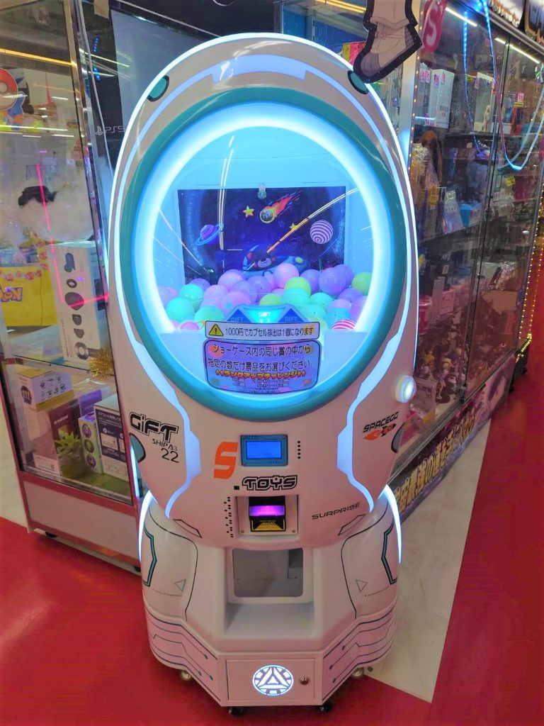 宇宙船の形をした光る筐体が目を引くコズミックガチャ