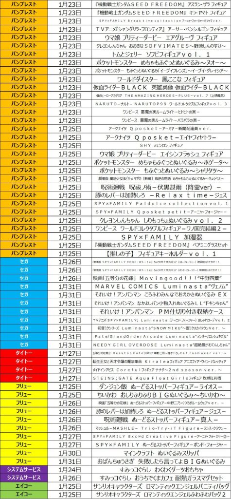 1月4・5週目の入荷情報