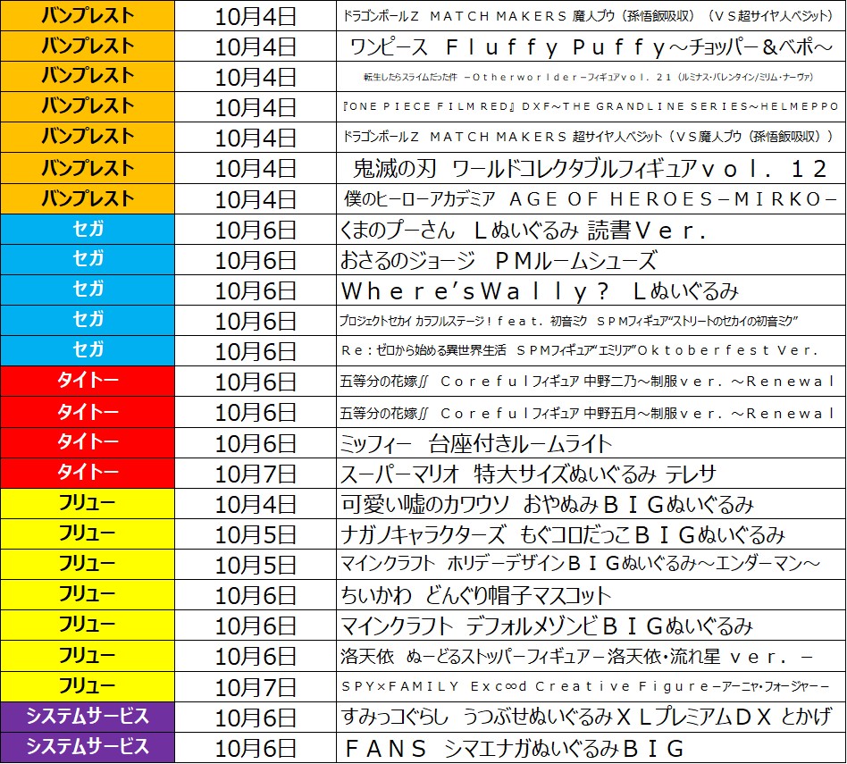 10月1週目の入荷情報