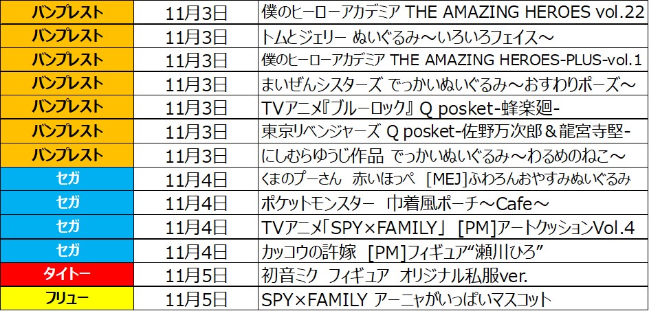 11月1週目の入荷情報