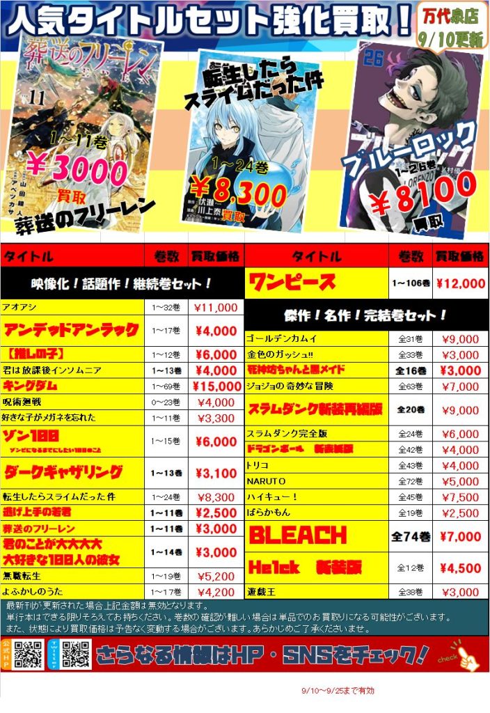 【コミック】買取情報~♪
