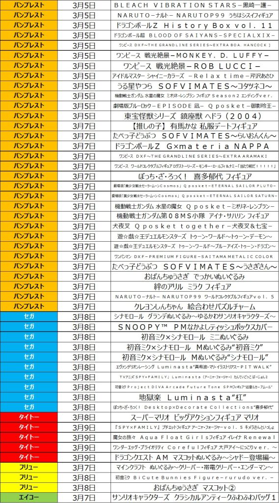 3月2週目の入荷情報