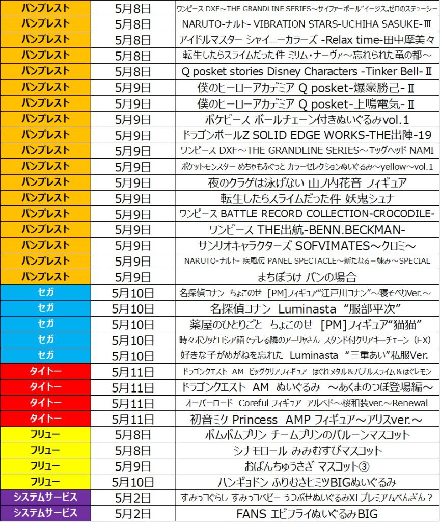 5月2週目の入荷情報