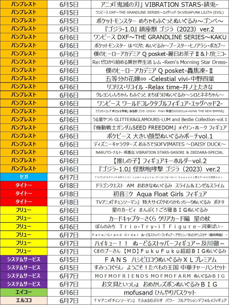 6月2週目の入荷情報